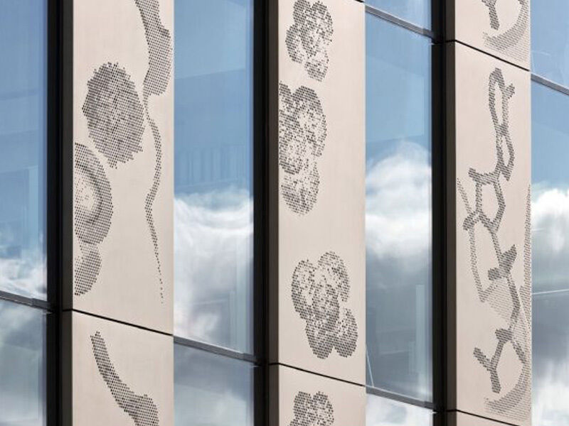This facade solution is commonly humdrum achieving little more than a decorative pattern to sheet aluminium. This isn’t what we do preferring to focus on the exceptional. The Everyman Theatre in Liverpool showcase just how special perforating can be. A project we are immensely proud of on a Stirling Prize winning project. Laser cut perforations bringing to life the residents of this unique city. The biosciences building at Dundee university, the learning centre in Hereford and the John Lewis facades at Horsham show what is possible in perforated murals. We are here to help you to achieve excellence in perforating.